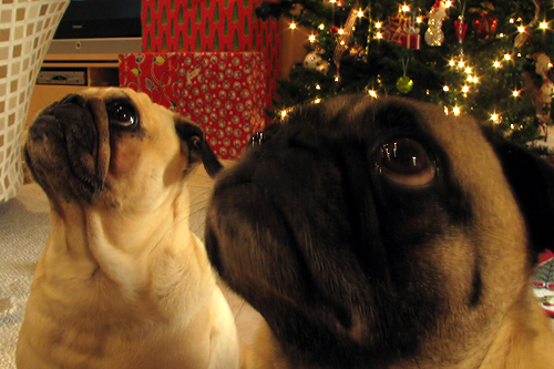 We spent much of the weekend putting up Christmas decorations. Needless to say, the pugs weren’t too interested in the decorating process.