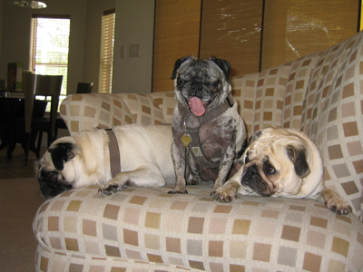 The clamshell chair in the living room is one of Benjamin, Henry and Luna’s favorite sleeping spots in the house. It seems like there is always at least one pug in the chair at all times and most of the time, all three are piled up there. Benjamin and Henry have always been partial to that sleeping spot because they can catnap and still see out the front door. So they can bark at passersby from the lap of luxury.